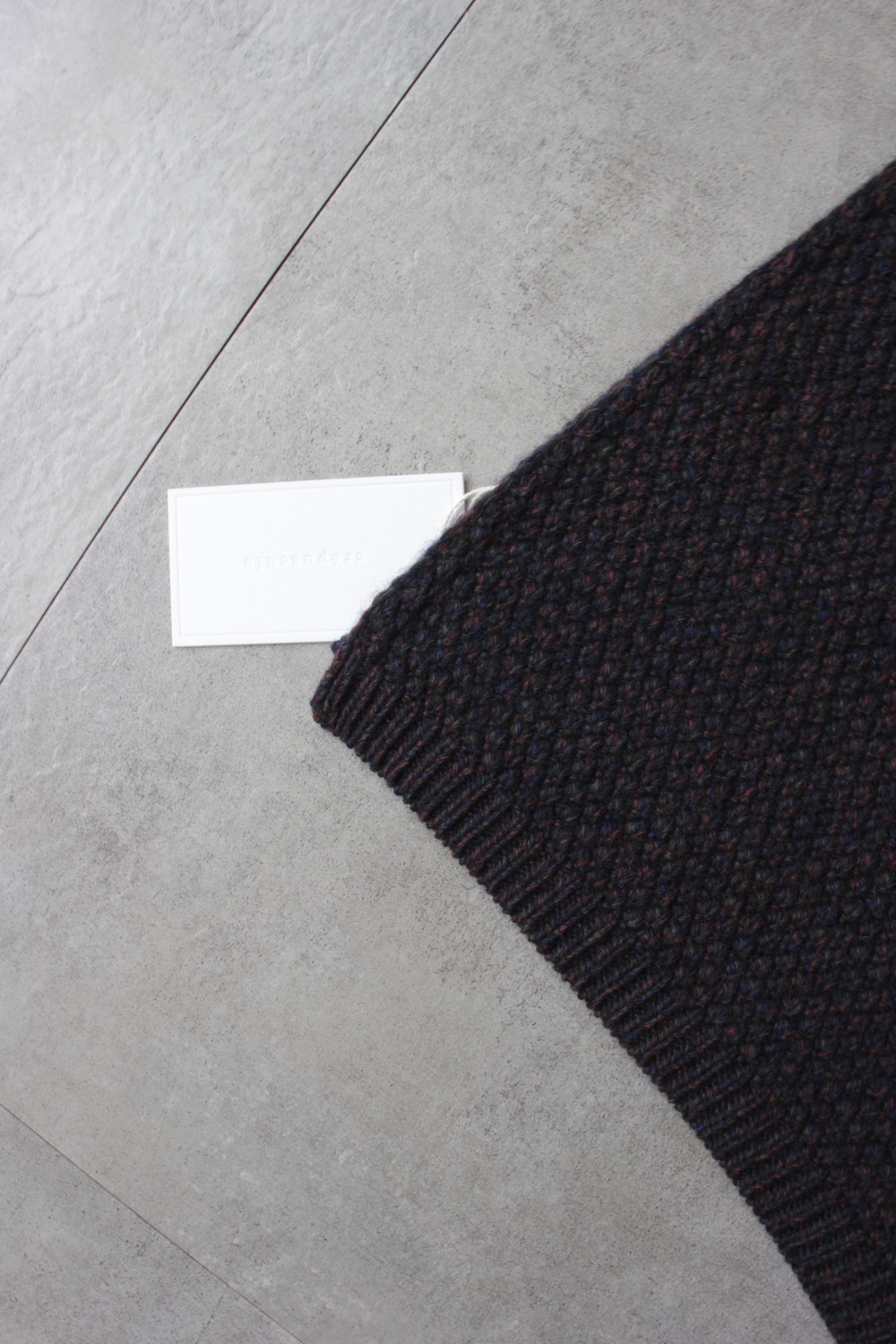 凹凸のある鹿の子編み。ブラックベースに他色の糸をミックスしておりブラックの単色では出せない奥行きのある色目が特徴です。