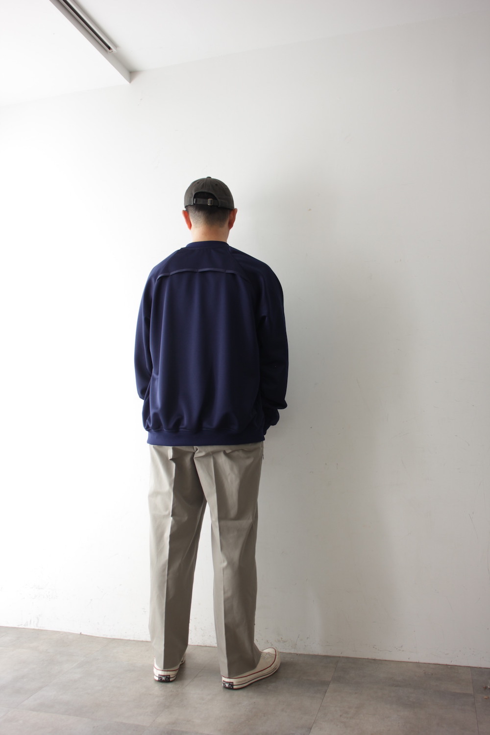 サッカーのユニフォームを集めている自分が最近集めだしたのはちょっと変わったディティールの多いトレーニングトップ。ユニフォーム同様に年代によってシルエットやディティールが変わっていく様子が面白い。そんな中で00’sくらいのちょっとハイテクな雰囲気のディティールを詰め込んだトレーニングトップを作った。配色のラインやリブの無い部分のディティール、背中のベンチレーションなど細かな部分に注目してほしいトレーニングトップです。スウェット代わりに着るのはもちろん、シャツを中に入れて着たりしてもいいのかなと思います。