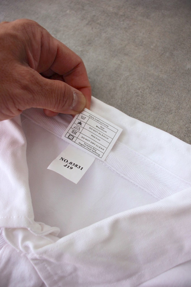 襟に付くラベルにはJERSEY UTILITY SPORTとコントラクトナンバーが記載されています。